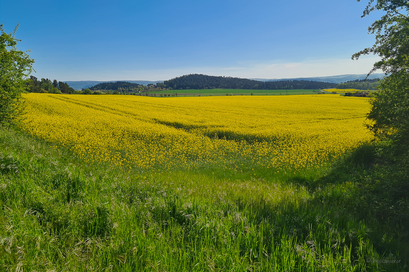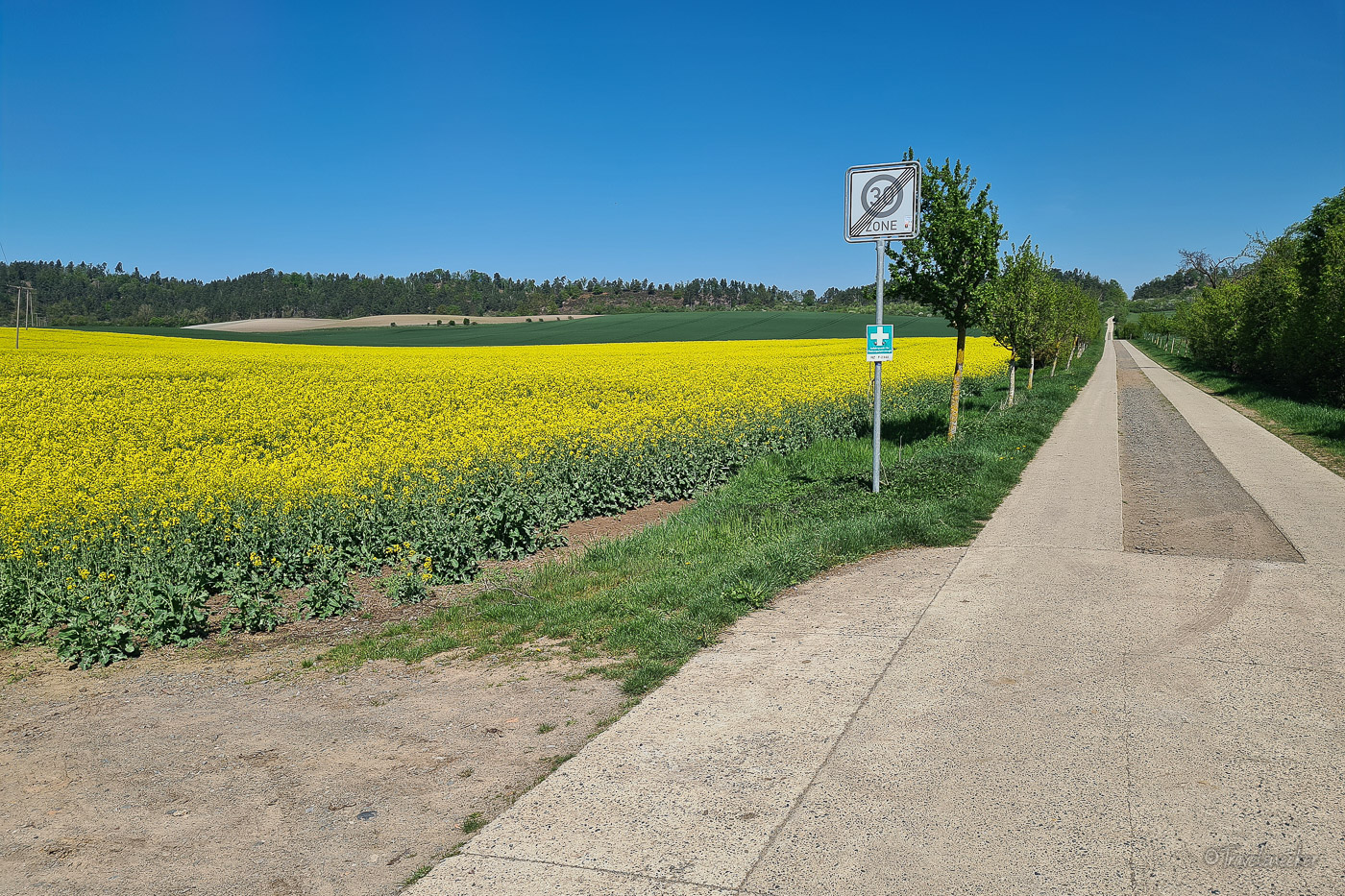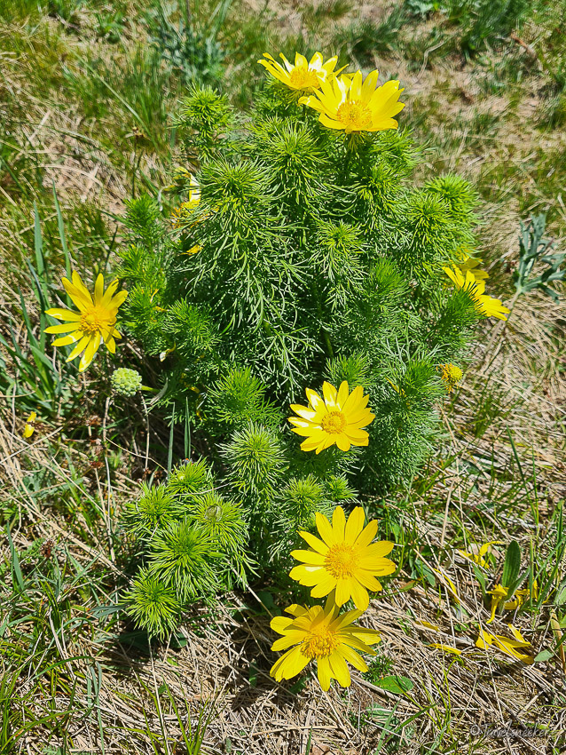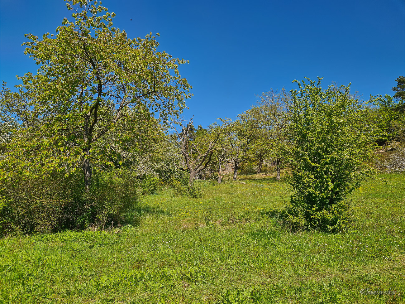 Diese schöne Rundwanderung macht man am besten im Frühjahr, wenn die Streuobstwiesen bühen. Wir waren ein kleines bisschen zu spät dran, denn die Obstbäume wurden schon grün und hatten überwiegend ihre Fruchtbüten verloren. Dennoch hat es sich gelohnt, denn die Streuobstwiesen sind nicht das einzige Highlight. Wenn man von Börnecke aus startend den Betonweg bis zu den Streuobstwiesen hoch geht und am Schusterberg rechts einen schmalen Weg hoch geht, kommt man nach kurzer Zeit zu einem Hang mit Adonisröschen. Ich wusste gar nicht, dass es hier auch welche gibt, denn wir hatten extra mal eine Wanderung zu den Adonisröschen bei Hoppenstedt Nähe Hornburg gemacht. Es war für uns eine positive Überraschung, zumal an diesem Hang (für mein Empfinden) mehr Adonisröschen zu sehen waren. Der leicht versteckte und nicht sofort erkennbare Weg ist allerdings tatsächlich schlecht zu finden, da das Schild zu der Adonisröschen-Wiese genau an dem Punkt irreführend geradeaus zeigt.