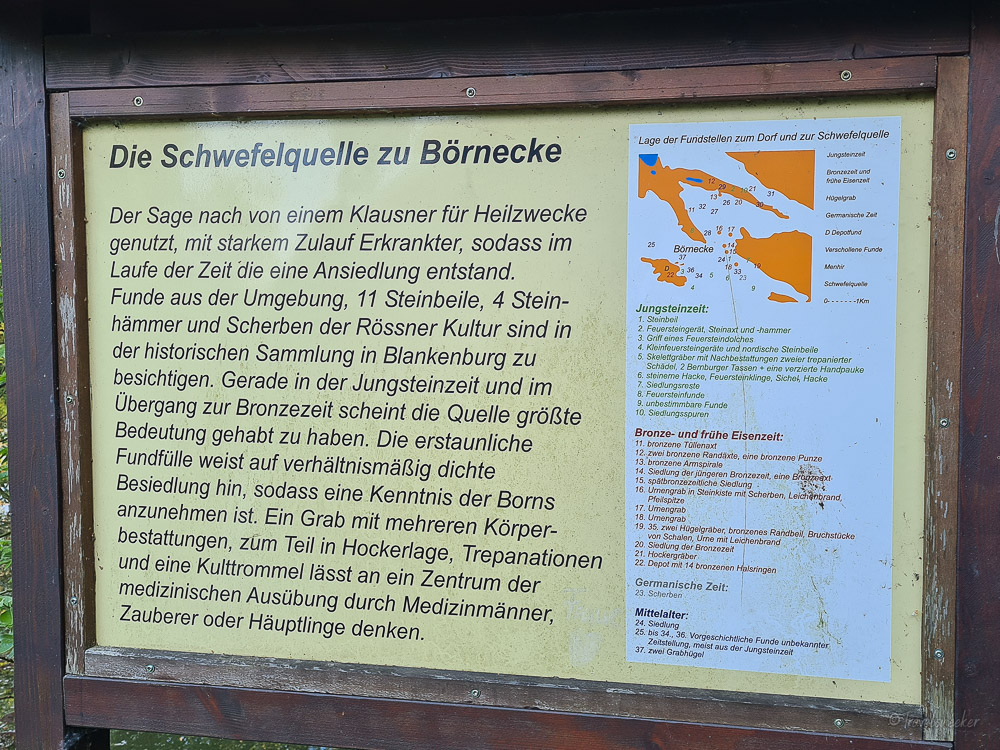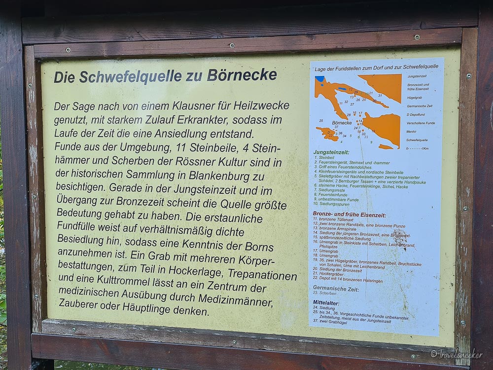 In Börnecke selbst kann man noch einen Schlenker zur Schwefelquelle machen. Ich hatte erwartet, dass es auch nach Schwefel riecht, aber dem ist nicht so. Börnecke selbst ein ein kleines, verschlafenes Örtchen, dass sicherlich niedliche Häuschen hat, aber nicht wirklich etwas Sehenswertes.