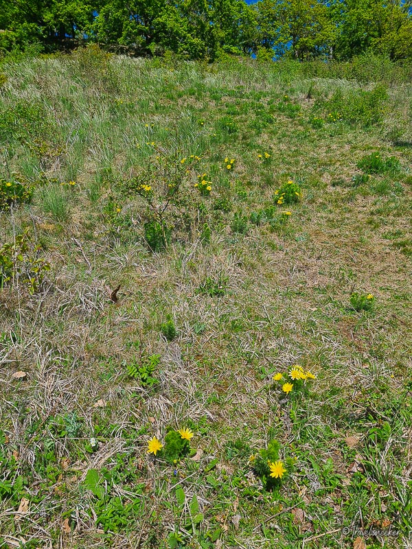 Wenn man von Börnecke aus startend den Betonweg bis zu den Streuobstwiesen hoch geht und am Schusterberg rechts einen schmalen Weg hoch geht, kommt man nach kurzer Zeit zu einem Hang mit Adonisröschen. Die Ausschilderung ist nicht so gut bzw der Pfeil zeigt irreführend geradeaus statt nach rechts – man muss genau gucken. Ich wusste gar nicht, dass es hier auch welche gibt, denn wir hatten extra mal eine Wanderung zu den Adonisröschen bei Hoppenstedt Nähe Hornburg gemacht. Es war für uns eine positive Überraschung, zumal an diesem Hang (für mein Empfinden) mehr Adonisröschen zu sehen waren. Der leicht versteckte und nicht sofort erkennbare Weg ist allerdings tatsächlich schlecht zu finden, da das Schild zu der Adonisröschen-Wiese genau an dem Punkt irreführend geradeaus zeigt.